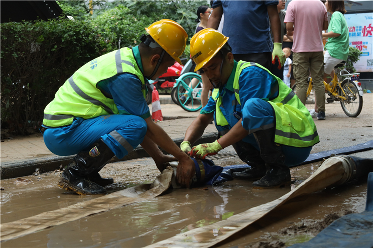 7月23日凌晨3點(diǎn)應(yīng)急搶險隊(duì)抵達(dá)鄭州市,與當(dāng)?shù)卣鞴懿块T交接后,立即前往鄭州市火車站對地下人行通道進(jìn)行抽水作業(yè)。7月23日10點(diǎn)中節(jié)能國禎第一突擊隊(duì)已將鄭州市火車站地下人行通道積水抽取干凈,根據(jù)指揮部安排前往鄭州隆福國際小區(qū)地下車庫排澇作業(yè)。
