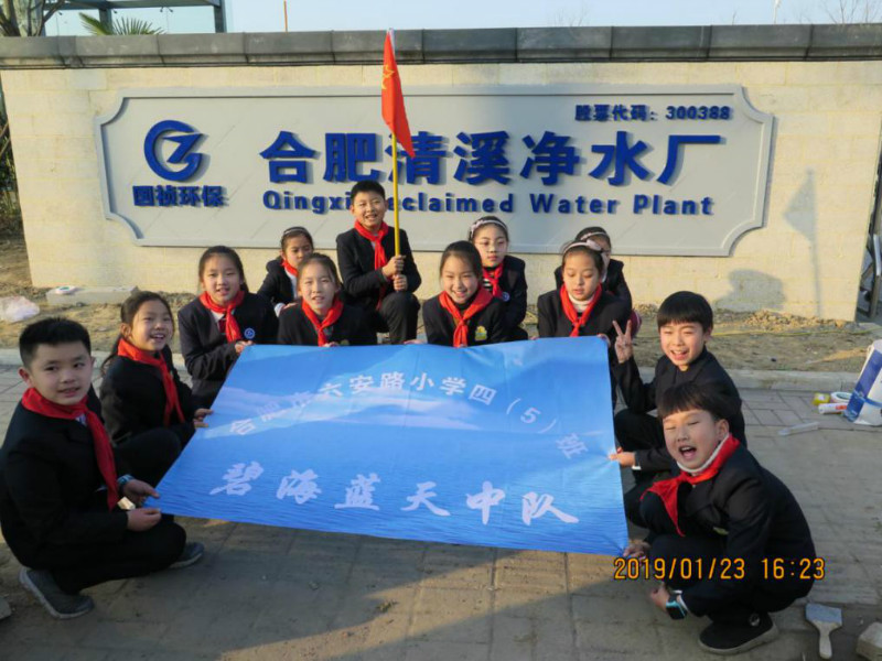 1月23日下午,“碧海藍(lán)天”中隊(duì)全體隊(duì)員在老師的帶領(lǐng)下,參觀了安徽首座全地埋花園式污水處理廠——國(guó)禎環(huán)保合肥清溪凈水廠。