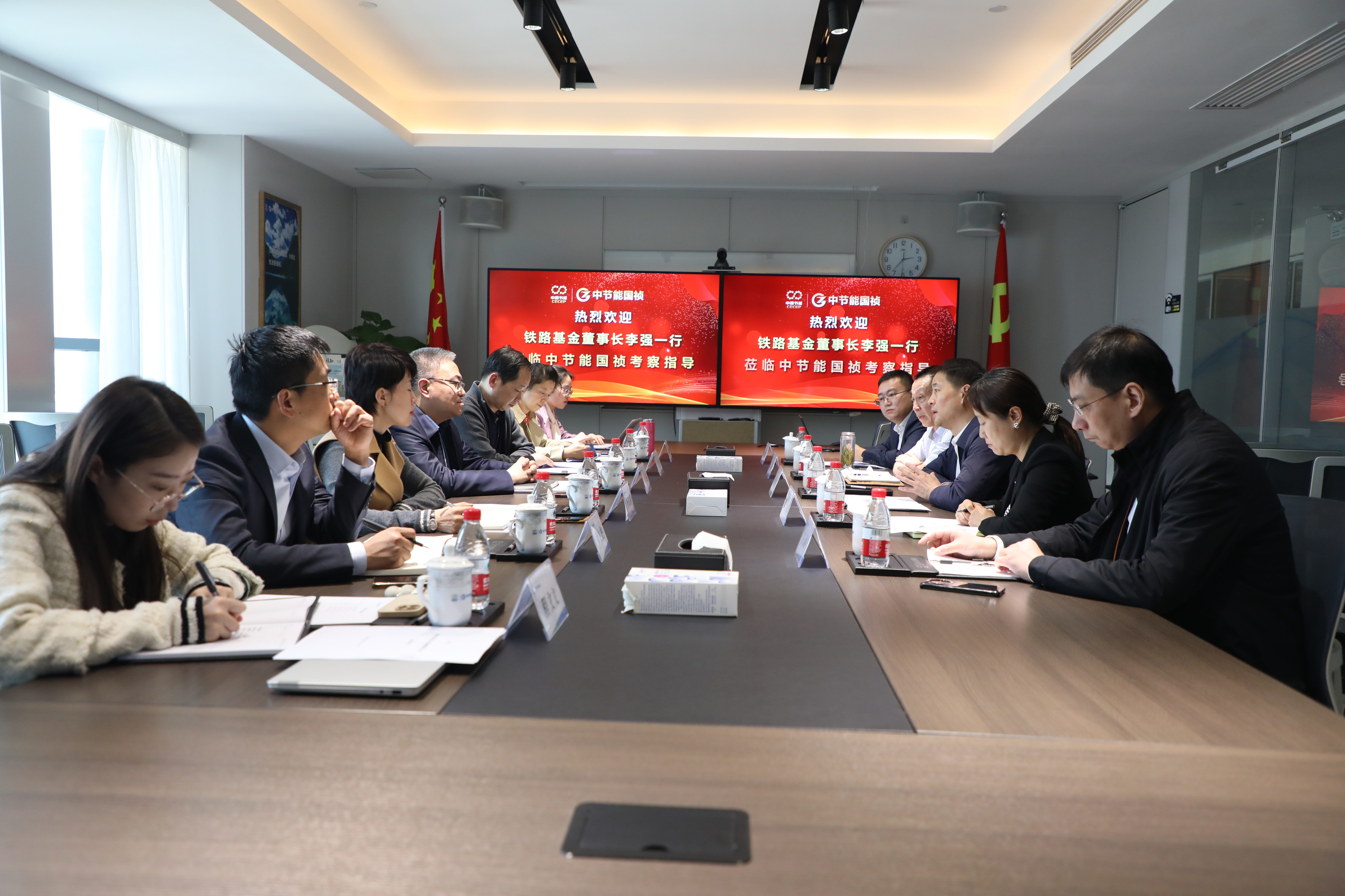 3月7日下午,中國節(jié)能副總經(jīng)理杜樂、中節(jié)能國禎董事長王堤在公司16樓會議室接待了安徽省鐵路發(fā)展基金股份有限公司董事長李強(qiáng)、副總經(jīng)理王偉、李弘焱等一行。