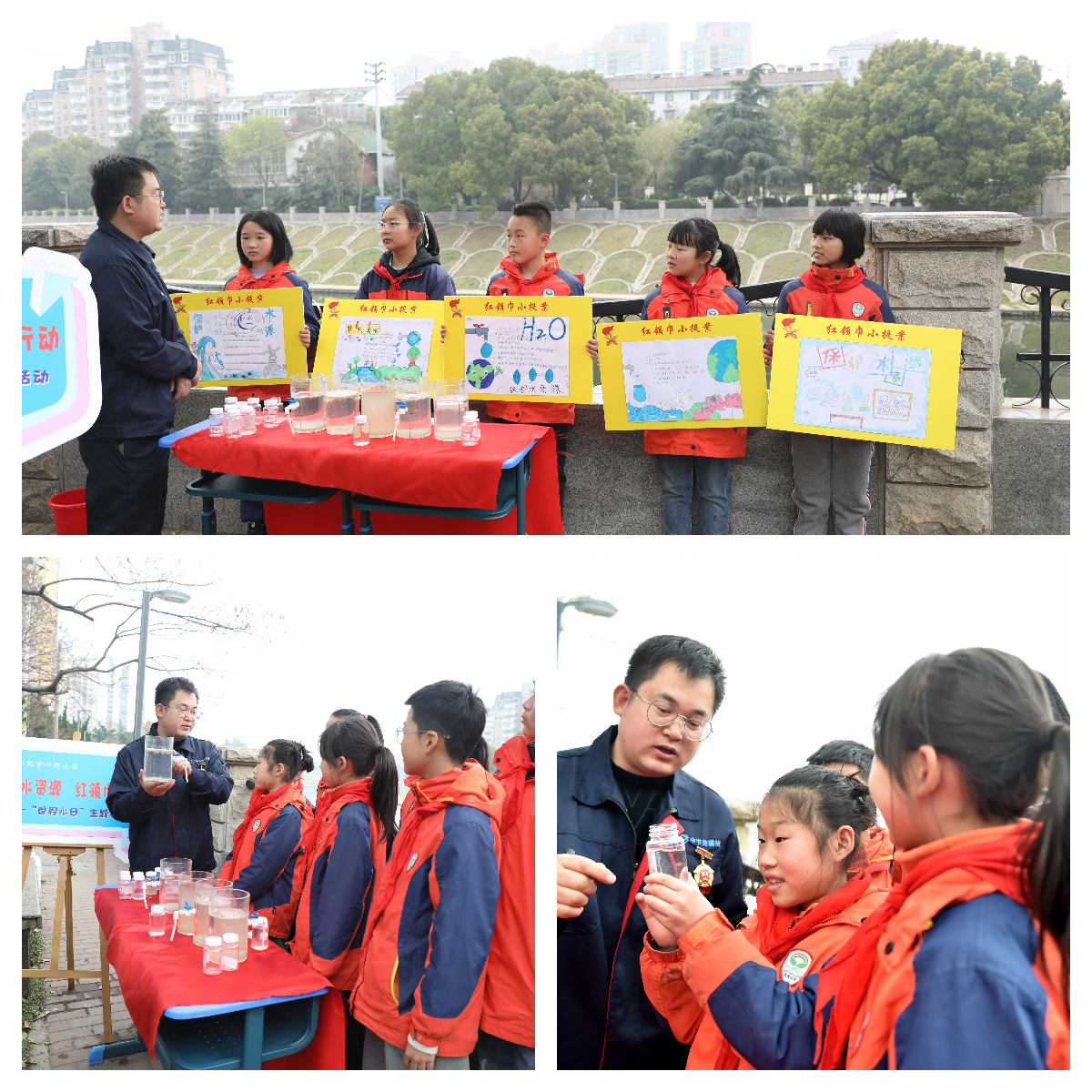 儀式結(jié)束后,全國技術(shù)能手、“安徽省五一勞動獎?wù)隆鲍@得者、中節(jié)能國禎員工楊策,帶領(lǐng)四河小學(xué)五(2)中隊同學(xué)們來到南淝河邊,開展了一場別具一格、內(nèi)容精心設(shè)計,以“珍惜水環(huán)境 紅領(lǐng)巾在行動”為主題的世界水日實踐活動?;顒又胁粌H有“世界水日”知識競答比賽、“污水變清泉”動手實驗,學(xué)生們還現(xiàn)場開動腦筋,拿出污水防治的“紅領(lǐng)巾小提案”。珍惜水、節(jié)約水、保護水資源的環(huán)保理念逐漸深入孩子們的心中。