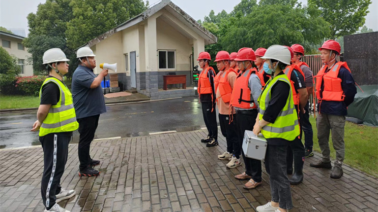 演練開始前組織全體員工對(duì)新修訂的《廬江片區(qū)防汛應(yīng)急專項(xiàng)預(yù)案》進(jìn)行解讀學(xué)習(xí),隨后對(duì)本次的《防汛應(yīng)急演練方案》進(jìn)行宣讀,根據(jù)演練方案內(nèi)容對(duì)每位員工在演練中負(fù)責(zé)的工作進(jìn)行分工,方案宣讀完畢后全體參演人員到廠區(qū)大門口集合。