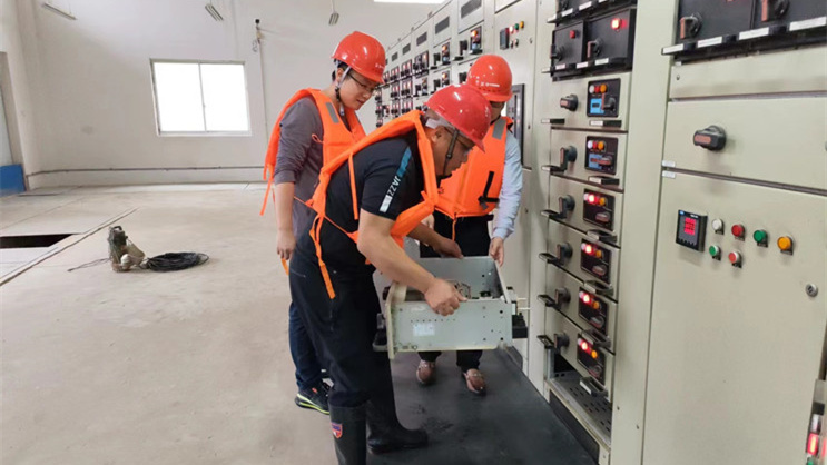 隨著演練總指揮的一聲令下,演練正式開始。參演人員立即按照演練方案要求各司其職,在廠區(qū)大門口、在線間門口、配電房門口等重要區(qū)域設(shè)置防汛沙袋,對(duì)廠內(nèi)低洼積水區(qū)域設(shè)置水泵進(jìn)行強(qiáng)排,為減少財(cái)產(chǎn)損失,將辦公樓一樓電腦、打印機(jī)、資料等貴重物品搬至二樓,對(duì)配電柜底部抽屜抽出放置在高處,對(duì)在線設(shè)備進(jìn)行拆除。隨著雨勢(shì)持續(xù)加大,河道水出現(xiàn)倒灌,廠內(nèi)已形成內(nèi)澇,為保障員工生命安全,總指揮下達(dá)撤離命令,在撤離過(guò)程中模擬搶救受困人員撤離。通過(guò)參演人員在演練過(guò)程中的分工合作、緊密配合,本次演練取得圓滿成功。